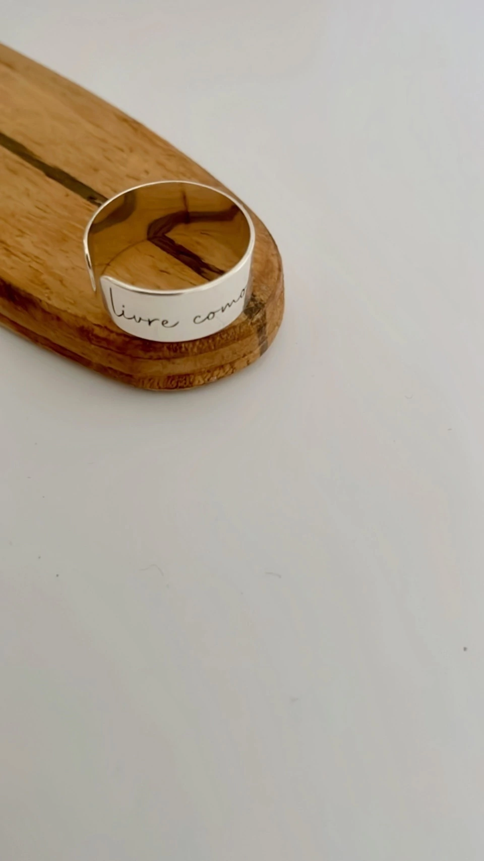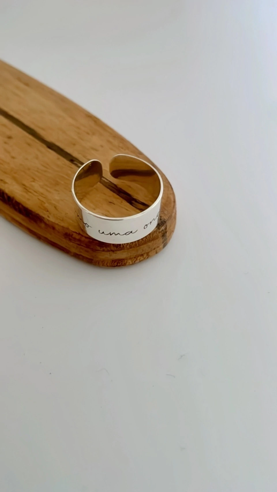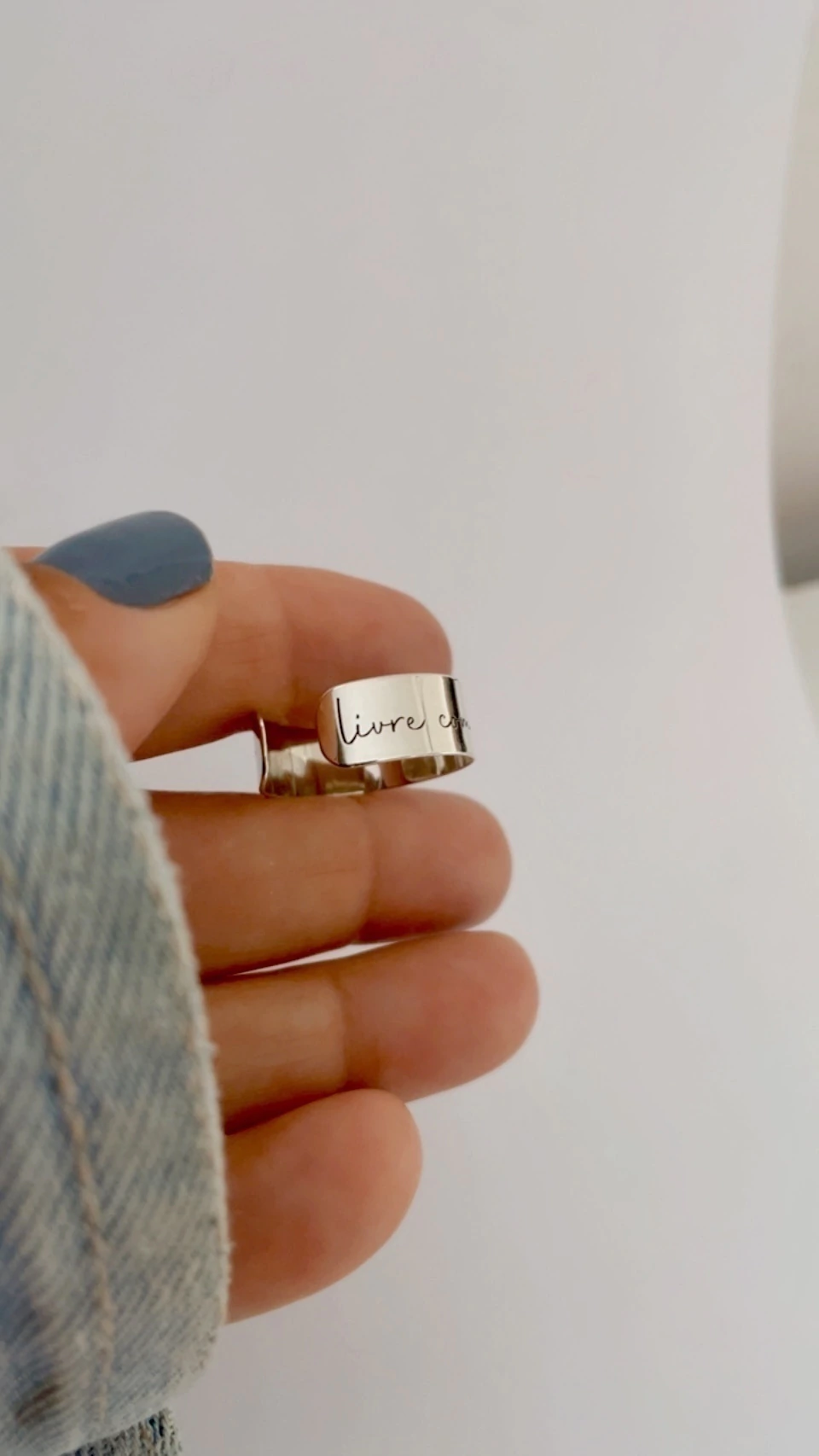Anel Livre como uma onda no mar – Prata 925 regulável Sinta a liberdade a cada movimento com este anel em prata 925, delicadamente gravado com a frase "Livre como uma onda no mar". Seu design regulável garante conforto e ajuste perfeito para todos os tamanhos. Uma peça que une estilo e significado, perfeita para quem valoriza autenticidade e elegância. Adquira já e leve a liberdade do mar para o seu dia a dia!