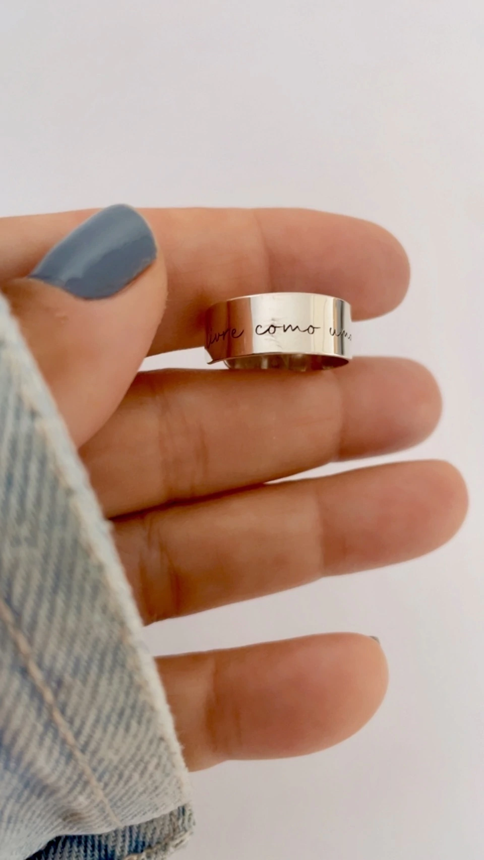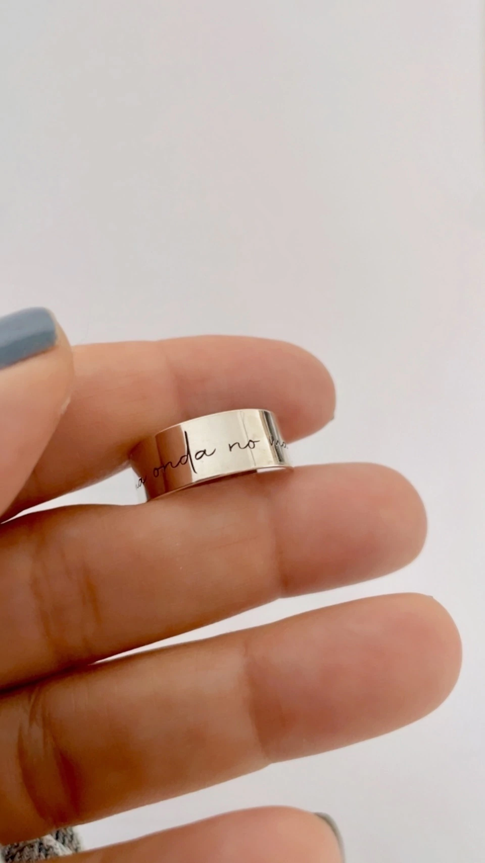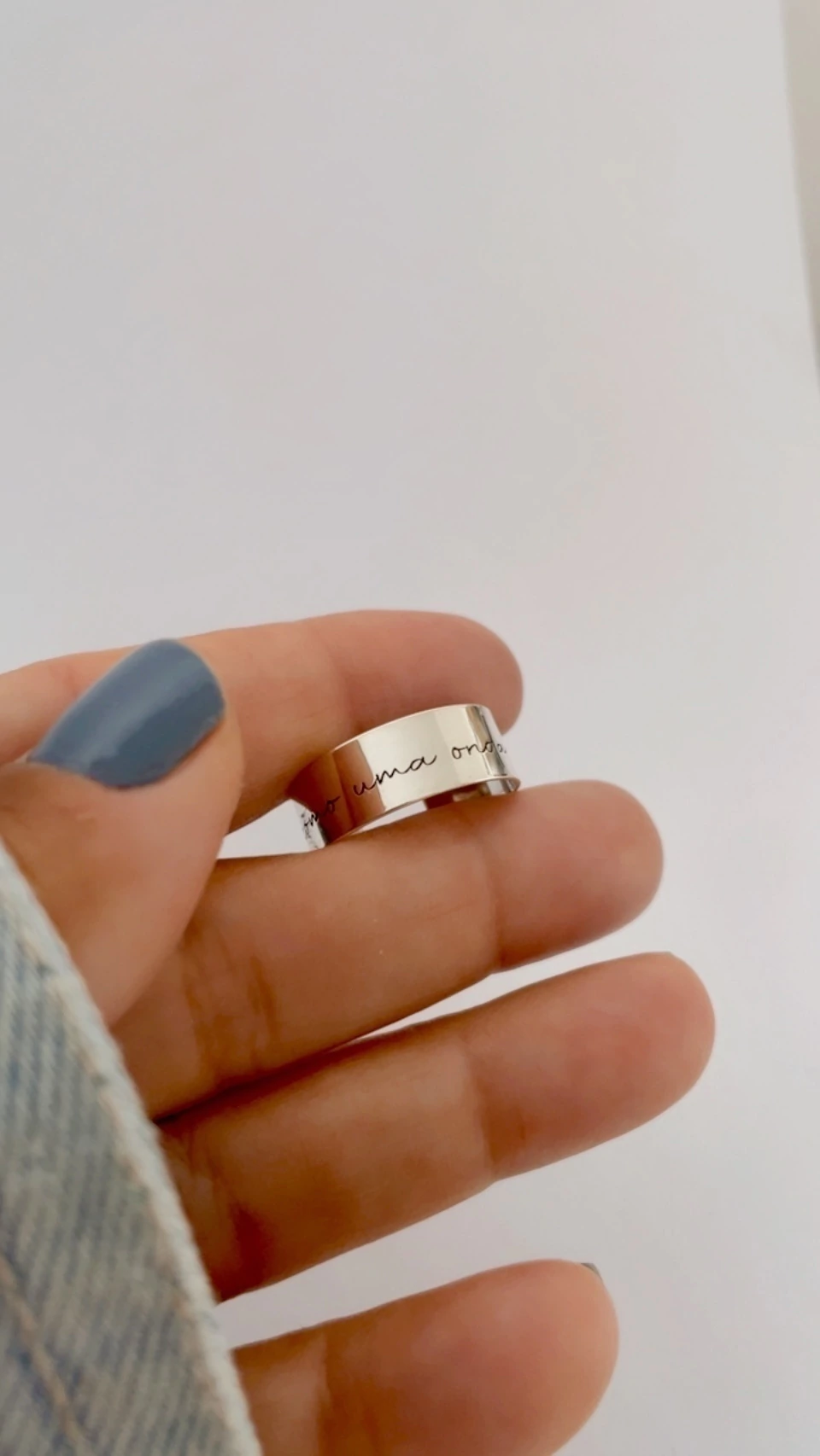 Anel Livre como uma onda no mar – Prata 925 regulável Sinta a liberdade a cada movimento com este anel em prata 925, delicadamente gravado com a frase "Livre como uma onda no mar". Seu design regulável garante conforto e ajuste perfeito para todos os tamanhos. Uma peça que une estilo e significado, perfeita para quem valoriza autenticidade e elegância. Adquira já e leve a liberdade do mar para o seu dia a dia!