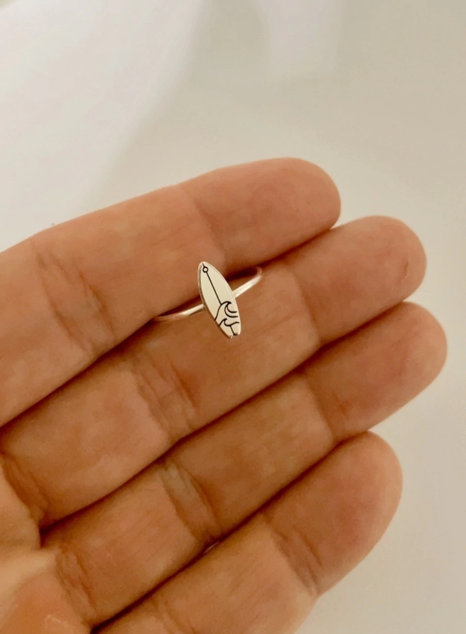 Descubra o charme singular do Anel Prancha CDs em prata, uma joia personalizada que traduz a paixão pelo surf com sofisticação e estilo. Confeccionado em prata 925 de alta qualidade, este anel apresenta um design exclusivo inspirado nas pranchas de surf, perfeito para quem deseja expressar sua conexão com o mar de maneira sutil e elegante.