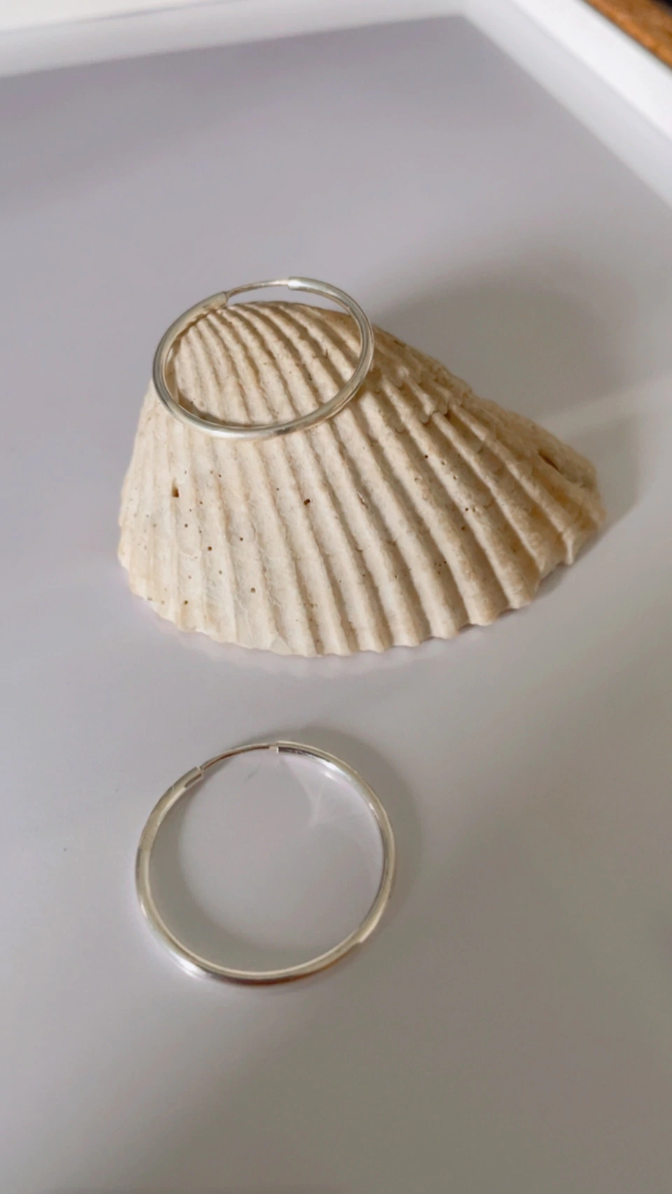 Argola em prata de fio redondo no tamanho de 2,2cm de diâmetro.