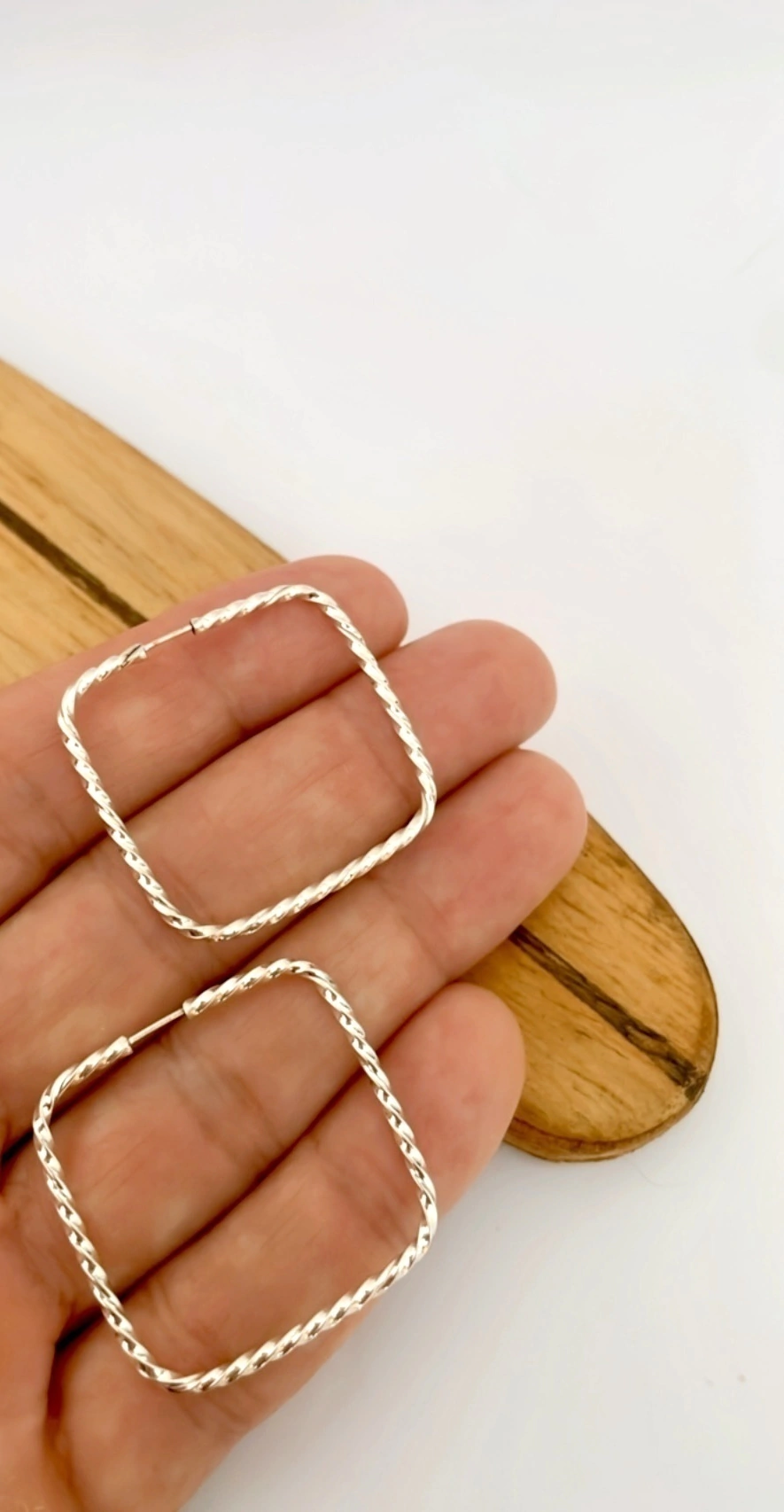 Argola Quadrada Fio Torcido em Prata ✨