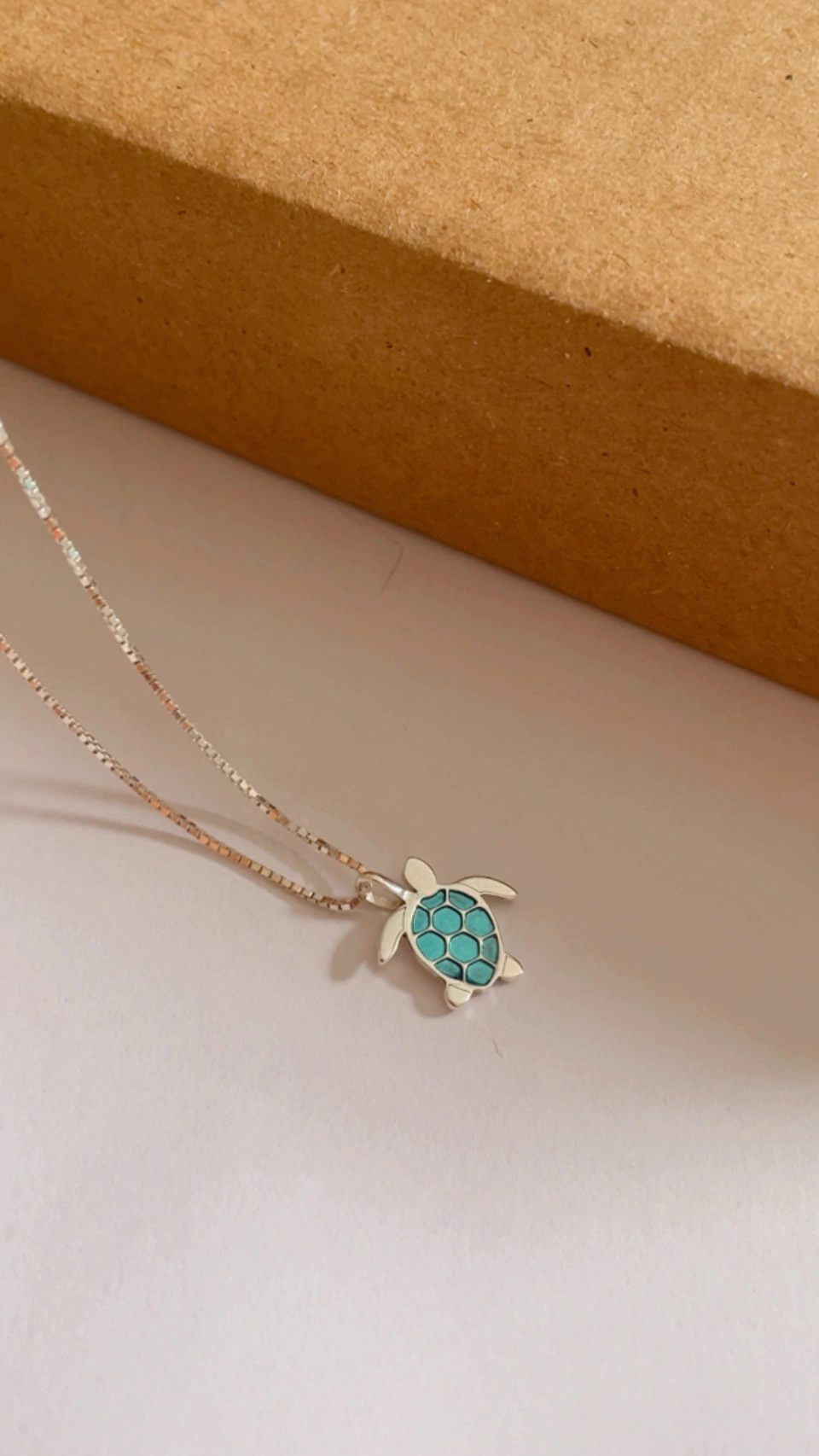 O Pingente de Prata Tartaruga é uma joia encantadora que simboliza longevidade, proteção e sabedoria. Seu design delicado em prata 925 retrata a tartaruga com detalhes minuciosos no casco, disponíveis em duas versões: resinada, com toque colorido que remete às águas do mar, e envelhecida, com contraste escurecido que valoriza os relevos e transmite um visual artesanal.