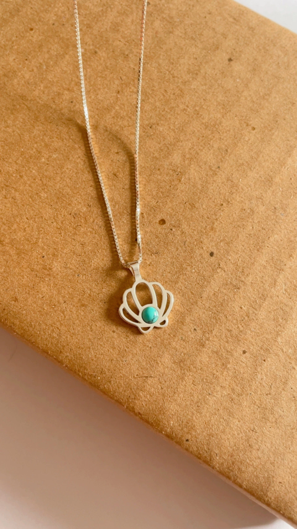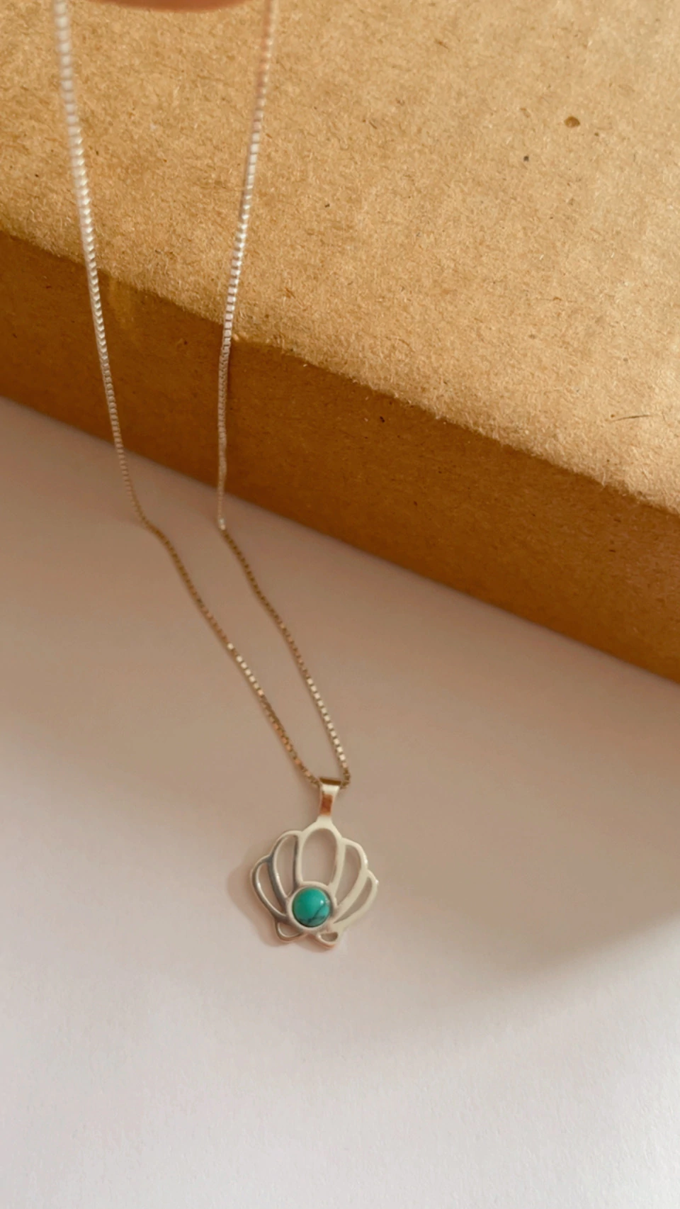Pingente de concha com pedra turquesa em prata 925 inspirado na praia de Cambori Ubatuba .
