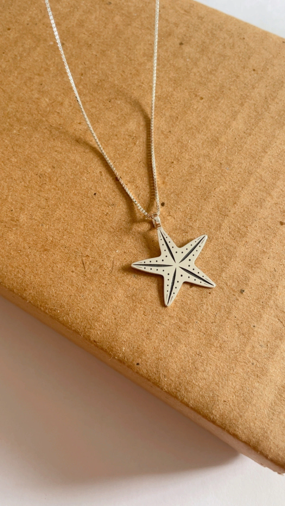Pingente de estrela do mar em prata 925 inspirado na praia de Noronha .