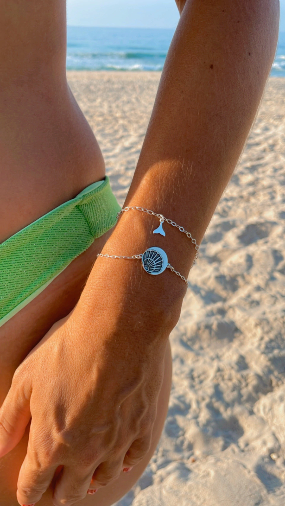 Pulseira Plaquinha Concha Prata 925: A Elegância do Mar em Seu Pulso
